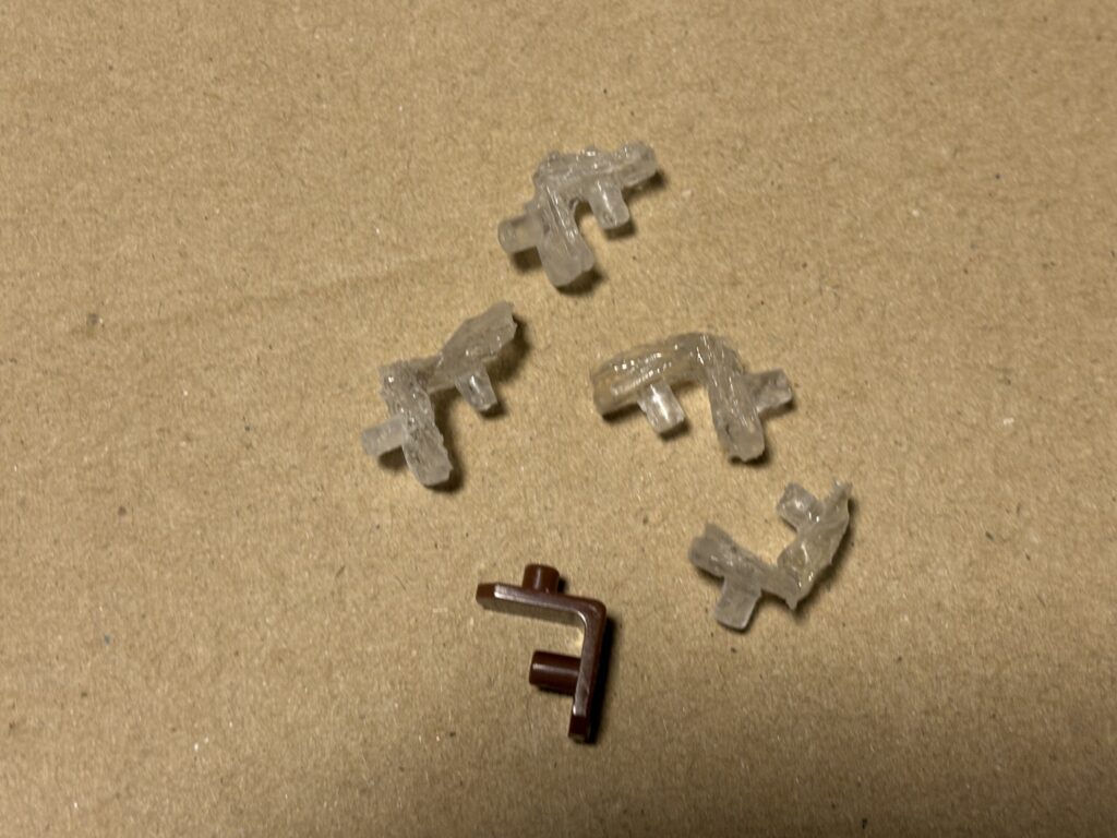 ●バリなどを取った結果できたものがこれら。かなり荒いが奇麗なパーツを作ることが目的ではないのでこれで完成とする。