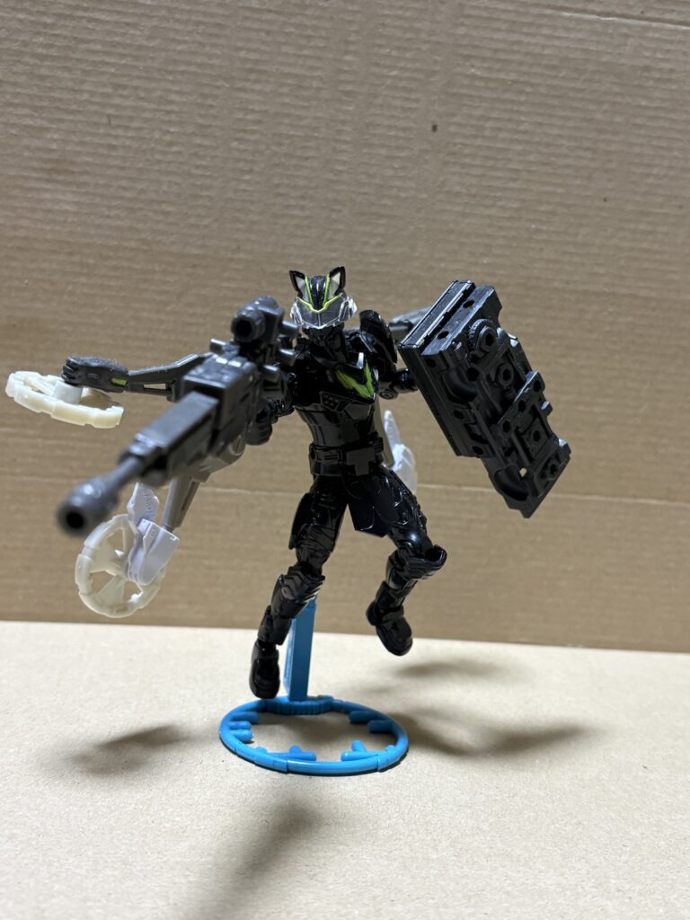 ●ちなみに、これの頭部は「装動 仮面ライダーギーツ 」の下あごのパーツを複製したものによって、「装動 仮面ライダーゼッツ」以前の装動と組み合わせることを可能にした「装動 仮面ライダーゼッツ」の頭部モドキです(触角が倒れたので完全な複製にならず)(目は油性ぺなどで塗った)。